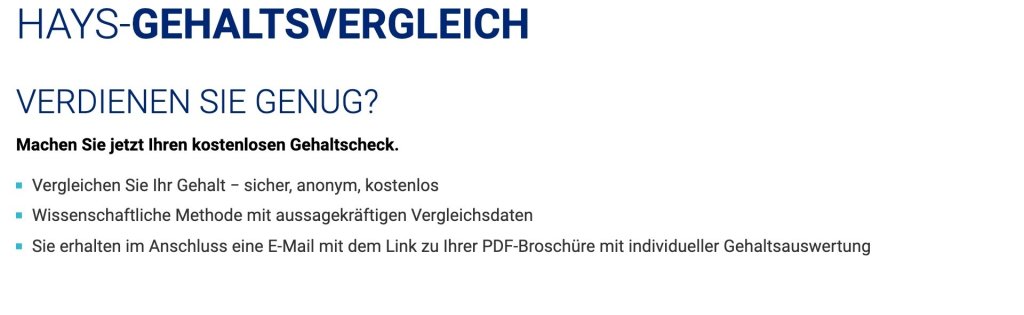 Werden Sie Kooperationspartner und profitieren Sie von einer der größten Gehaltsdatenbanken in der DACH-Region (durch mehrere tausend Gehaltsdatensätze pro Monat kontinuierlich aktualisiert), einer ausgereiften Technologie und der einfachen Anpassung an Ihre Design-Wünsche. Unser Grundprinzip besteht darin, dass jeder Kooperationspartner über die Einbindung des Checks Daten generiert und gleichzeitig Zugriff auf den gemeinsamen Datenpool erhält (Give & Take). Denn kein Partner schafft es alleine, eine statistisch ausreichende Anzahl an Gehaltsdaten zu generieren. Klicken Sie sich durch einige Kunden-Beispiele (Hays, Perm4, rexx system HR Software):