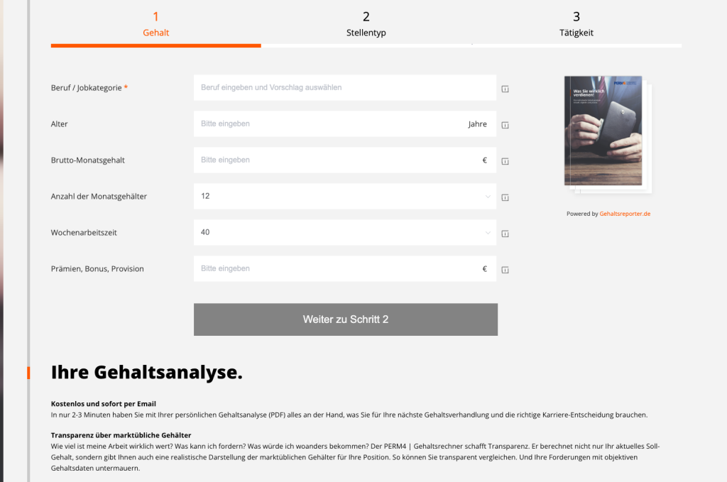 Attraktives Angebot für Ihre Nutzer (kostenlose, individuelle PDF-Gehaltsauswertung per Email)